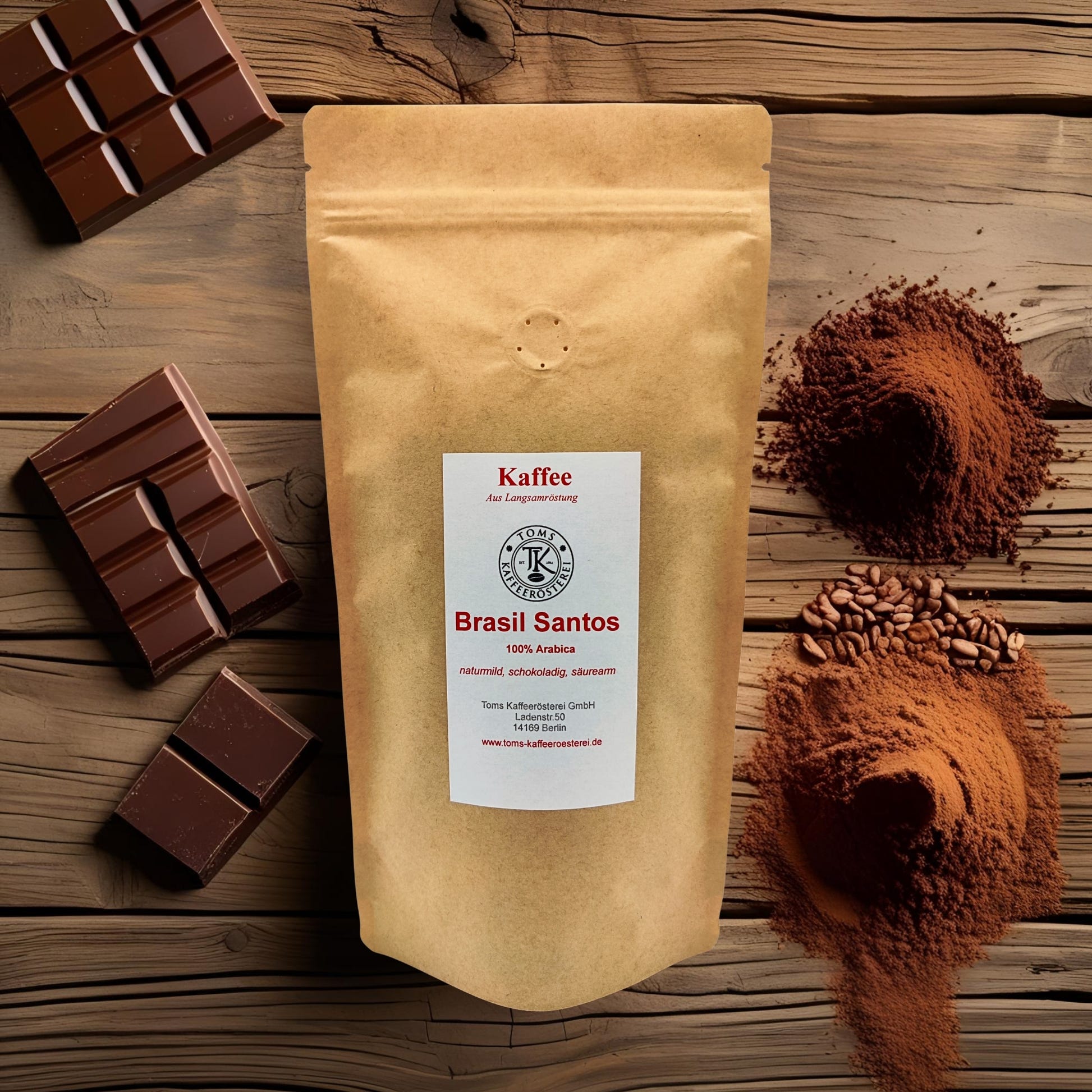 Der Brasil Santos ist ein klassischer Arabica aus Brasilien, der durch seine milde Art und seine Noten von Schokolade und Kakao überzeugt. Mit seinem mittleren Röstgrad (3 von 5) und einer sanften Intensität (2 von 5) ist er ideal für alle, die einen ausgewogenen, säurearmen Kaffee mit rundem Geschmack suchen.