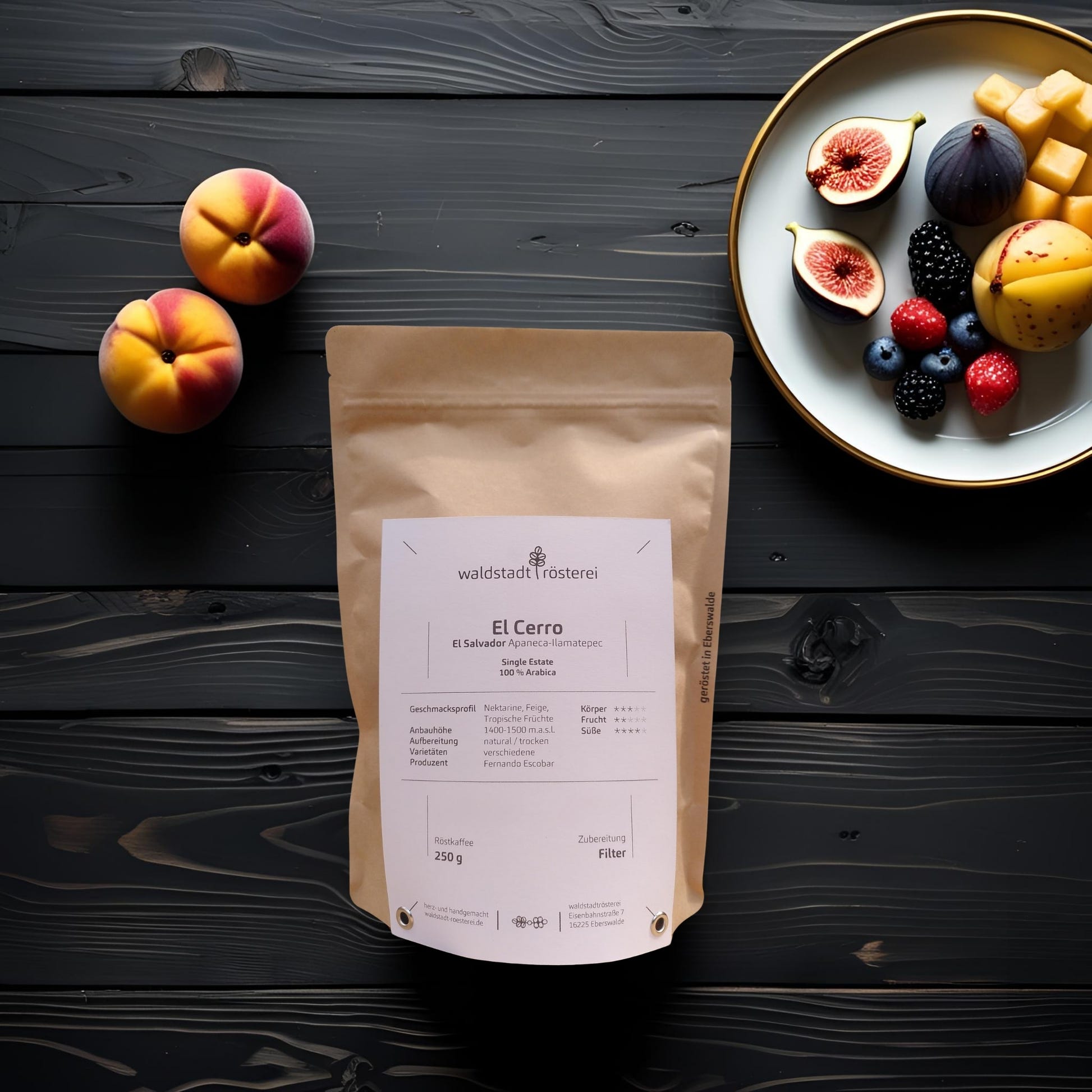 Der El Cerro – El Salvador Filter bringt das typische Geschmacksprofil zentralamerikanischer Spitzenkaffees in die Tasse: Vielschichtige Aromen von Nektarine, Feige, Beeren und tropischen Früchten sorgen für einen lebendigen, fruchtbetonten Filterkaffee mit mittlerer Süße und ausgewogenem Körper. Single Estate, handverlesen und schonend trocken aufbereitet, zeigt dieser 100% Arabica Kaffee eindrucksvoll, wie facettenreich El Salvador schmecken kann.Beschreibung
