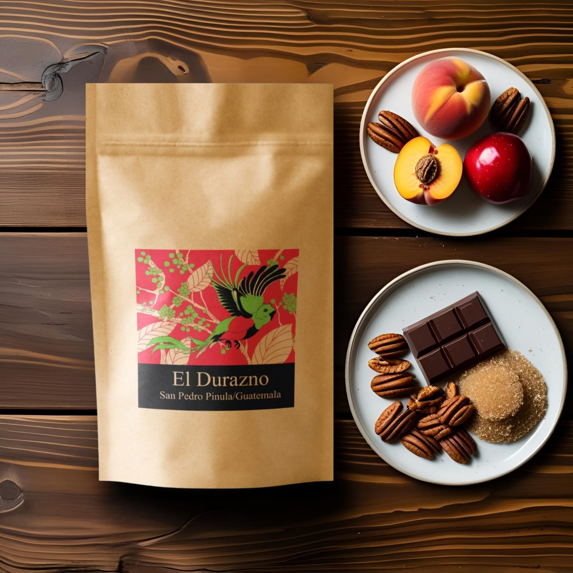 Guatemala zählt zu den bedeutendsten Kaffeeproduzenten Mittelamerikas. Die Finca El Durazno liegt in der Region Nuevo Oriente, wo das vulkanische Hochland mit seinem mineralstoffreichen Boden und das wechselhafte Klima ideale Bedingungen für den Anbau hochwertiger Arabica-Bohnen bietet. In Höhenlagen zwischen 1.500 und 1.700 Metern reift hier die Varietät Bourbon langsam heran – eine Sorte, die für ihre feine Süße und aromatische Tiefe geschätzt wird. Die Ernte erfolgt traditionell per Hand, um nur die reifen Kirschen auszuwählen. Anschließend wird der Kaffee im seltenen „White Honey“-Verfahren aufbereitet: ein besonders wasserarmer Prozess, bei dem ein Teil des Fruchtfleischs beim Trocknen an der Bohne verbleibt. Das verleiht dem Kaffee eine sahnige Textur und vielschichtige Aromen. In der Tasse zeigt sich der Guatemala EL Durazno balanciert und komplex – mit Noten von Schokolade, Pfirsich, rotem Apfel, Pekannüssen und braunem Zucker.
