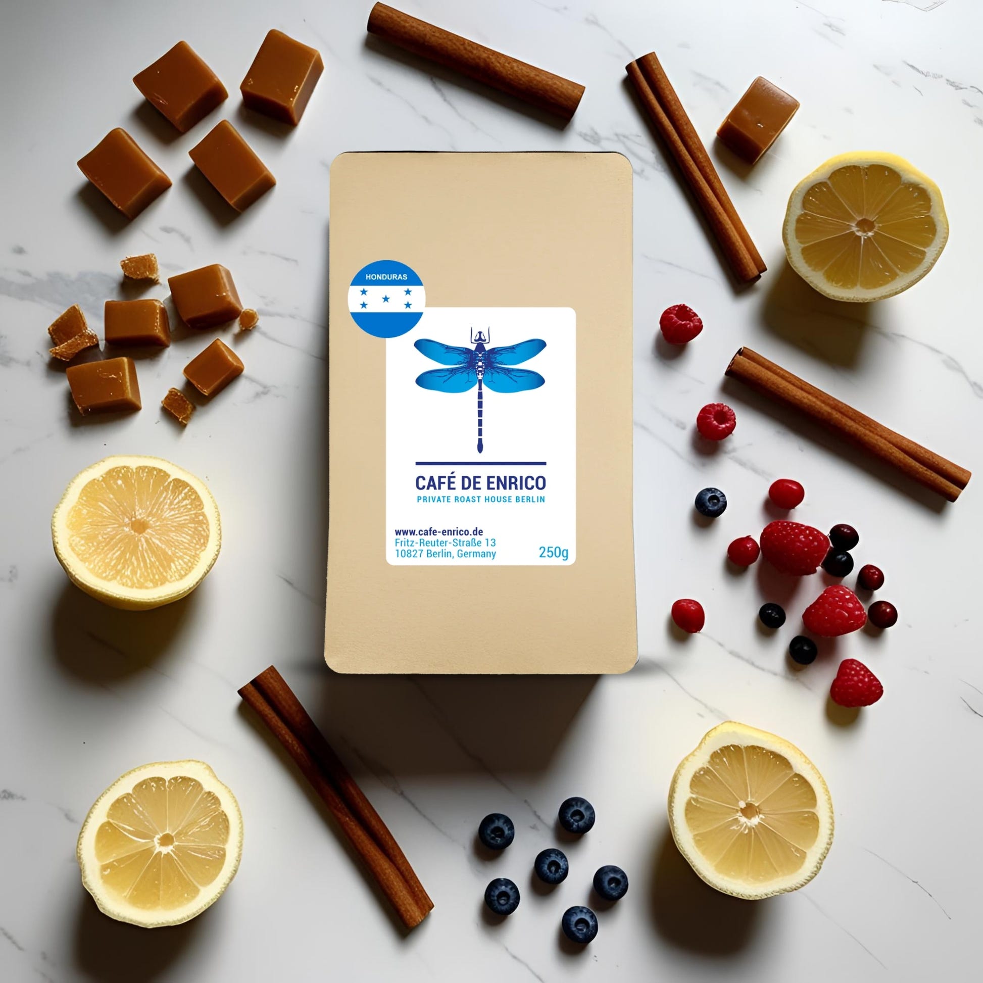 Dieser sortenreine Arabica-Kaffee aus Honduras vereint warme Gewürznoten mit einem lebendigen, fruchtigen Abgang. Zimt, Karamell sowie Anklänge von Beeren und Zitrone verleihen ihm eine ausgewogene Komplexität – ideal für Liebhaber von fein abgestimmten Espressoröstungen mit mittlerer Intensität.