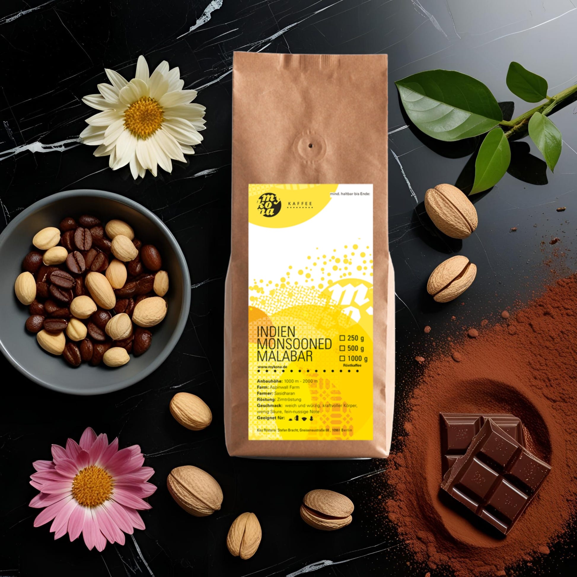 Dieser besondere Arabica-Kaffee aus dem Südwesten Indiens überzeugt mit seiner außergewöhnlich milden, säurearmen Tasse und einer cremigen Textur. Durch den traditionellen Monsooning-Prozess entwickelt er eine charakteristische Note von Nuss, Kakao und floralen Nuancen – ideal für Liebhaber milder, unkomplizierter Filterkaffees.
