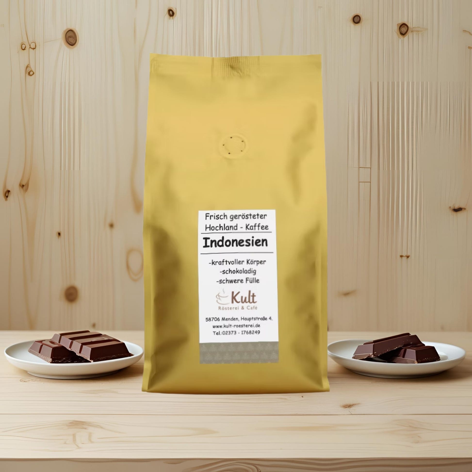 Der Indonesien-Kaffee der Kult Rösterei besticht durch seinen kräftigen Körper, schokoladige Noten und eine würzige Tiefe – perfekt für Liebhaber intensiver Aromen.