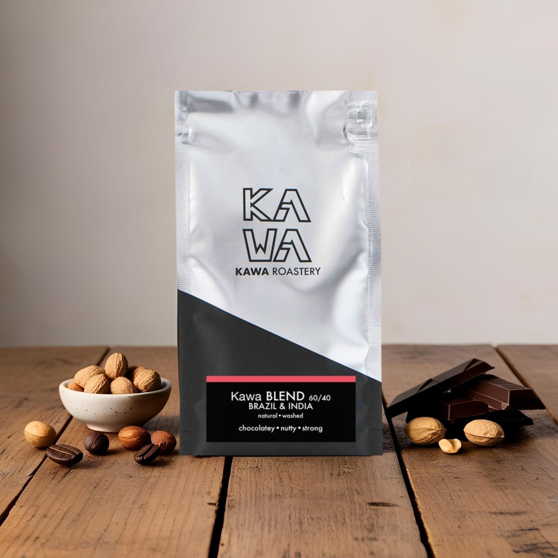 Entdecke KAWA Blend 60/40 – eine luxuriöse Mischung aus 60% sanftem brasilianischen Arabica und 40% kräftigem indischen Robusta. Perfekt für Espresso-Liebhaber und Fans von intensivem schwarzen Kaffee.