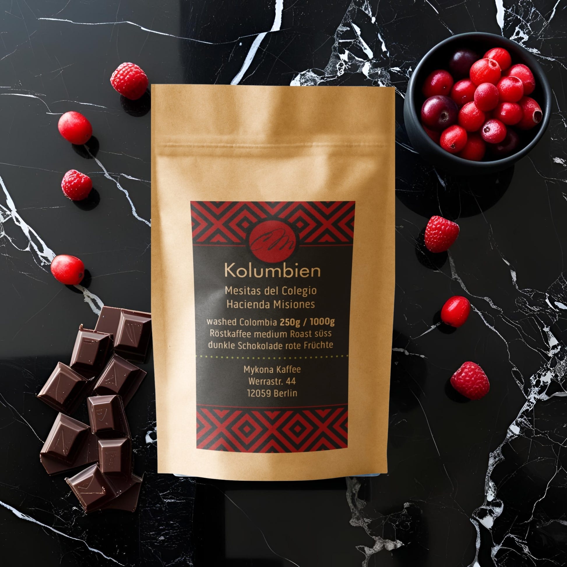 In den bergigen Regionen Kolumbiens, rund um das Städtchen Mesitas del Colegio, entstehen einige der ausdrucksstärksten Kaffees Südamerikas. Auf der Hacienda Misiones, die um 1900 gegründet wurde, wird Kaffee auf Höhenlagen zwischen 1.500 und 1.900 Metern angebaut – Bedingungen, die den Bohnen ein komplexes Aromaprofil verleihen. Das feucht-warme Klima, nährstoffreiche Böden und unterschiedliche Mikroklimata sorgen für optimale Reifung. Die Varietät „Colombia“ wird hier in traditioneller Handarbeit geerntet und im Washed-Verfahren aufbereitet, was dem Kaffee eine klare Struktur und fruchtige Nuancen verleiht. Neben dem Kaffeeanbau betreibt die Farm auch den Anbau von exotischen Früchten und Macadamia, was auf ein diversifiziertes und nachhaltiges Wirtschaftskonzept hinweist. Die Hacienda produziert insgesamt zwölf Varietäten – ein Hinweis auf ihre besondere botanische Vielfalt. Kolumbien ist weltweit für seine ausgewogenen Kaffees mit fruchtig-schokoladigen Noten bekannt, und dieser Kaffee ist ein Paradebeispiel für die hohe Qualität des Landes.Beschreibung
