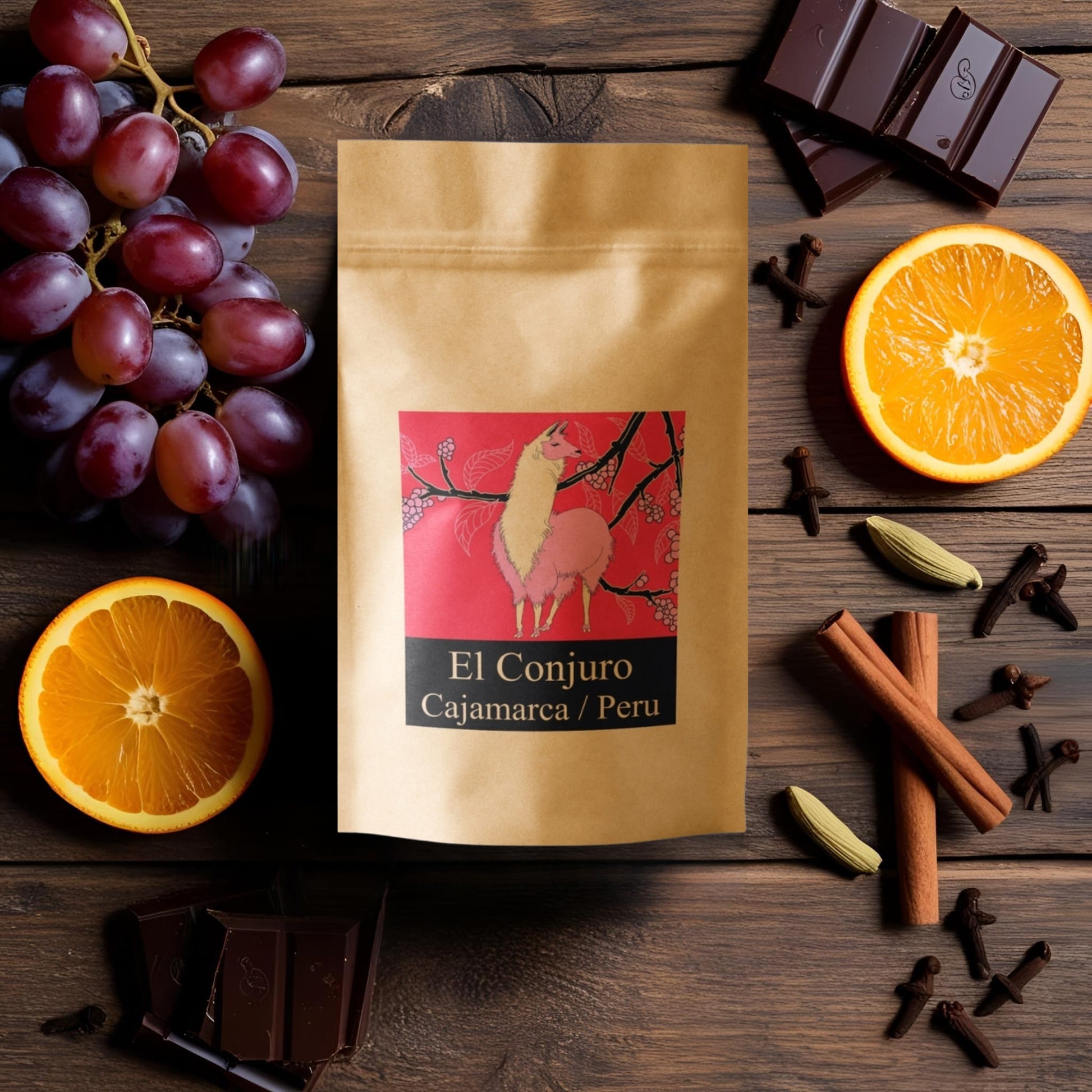 Ein charaktervoller Filterkaffee aus dem Norden Perus, der aus einer sorgfältig zusammengestellten Mischung kleiner Farmen rund um Jaen stammt. Der Peru El Conjuro begeistert mit fruchtigen Noten von Traube und Orange, die auf schokoladig-würzige Nuancen treffen – ein ausgewogener, nachhaltiger Kaffee mit Geschichte und Persönlichkeit.Beschreibung