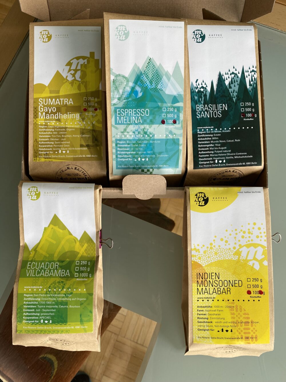 Mykona bietet seit 2009 Single Origin Kaffees aus 11 verschiedenen Kaffeeregionen an.
